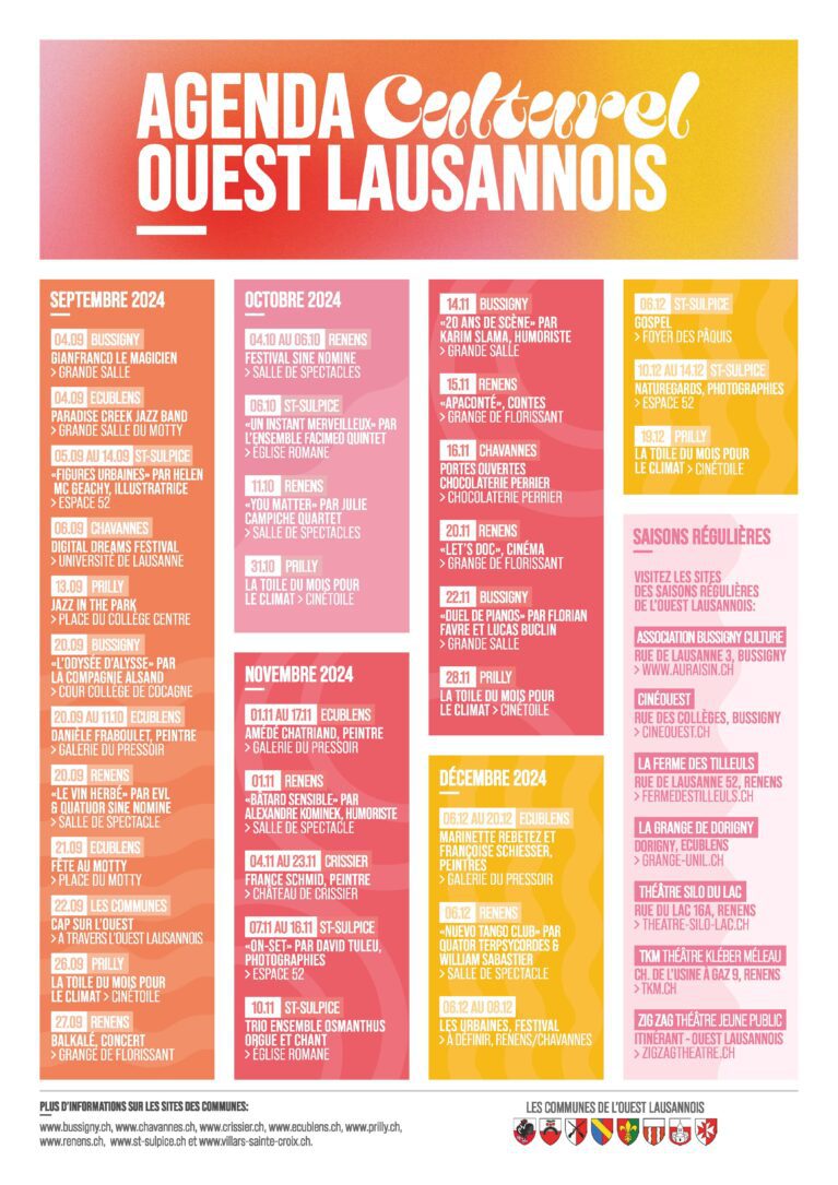 Les rendez-vous culturels de l'Ouest lausannois, répertoriés sur un seul document.