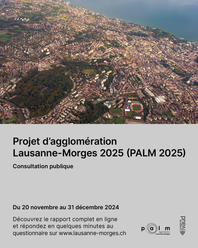 La phase de consultation publique du Projet d’agglomération Lausanne-Morges 2025 (PALM 2025) est officiellement ouverte, du 20 novembre au 31 décembre 2024 !