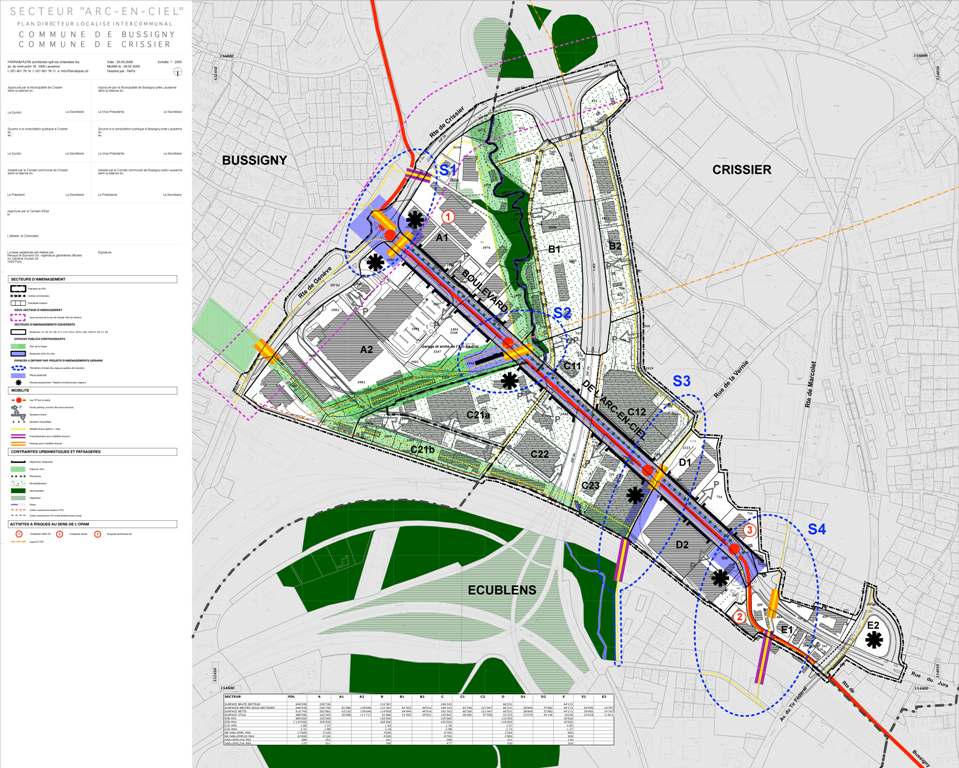 Suite à l’enquête publique lancée en juin 2009, le plan directeur localisé (PDL) intercommunal du secteur Arc-en-Ciel a été adopté par les Conseils communaux de Crissier et de Bussigny fin 2009 et ratifié par le Conseil d’Etat au printemps 2010. Il fait désormais office de référence première pour tous les plans à venir dans le secteur.