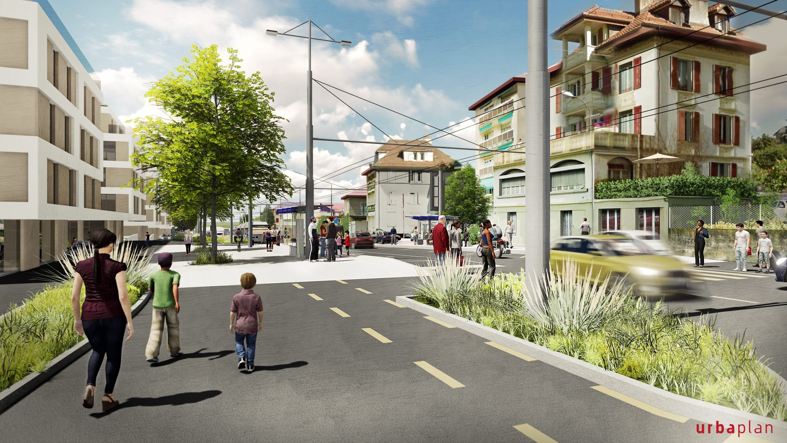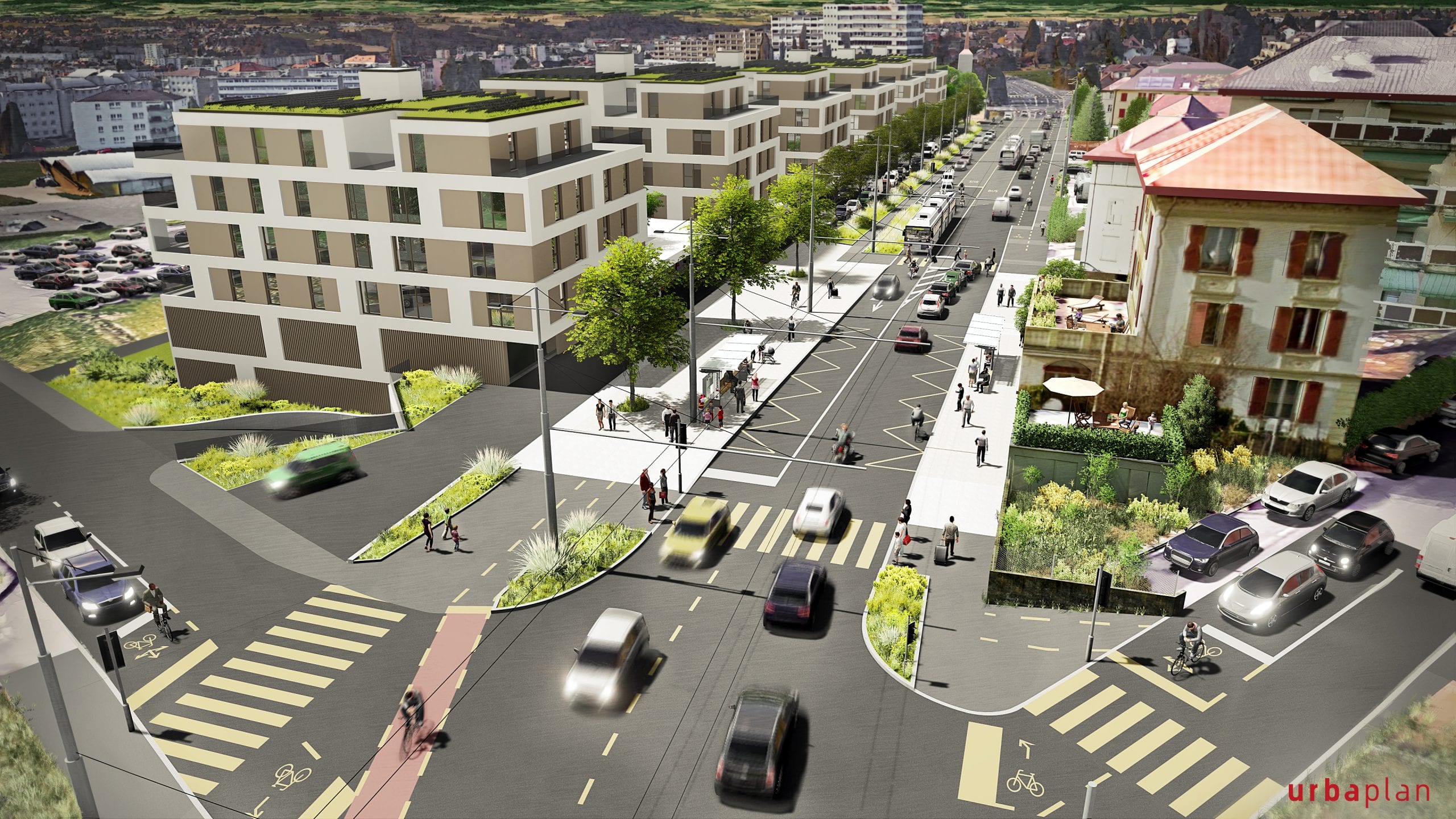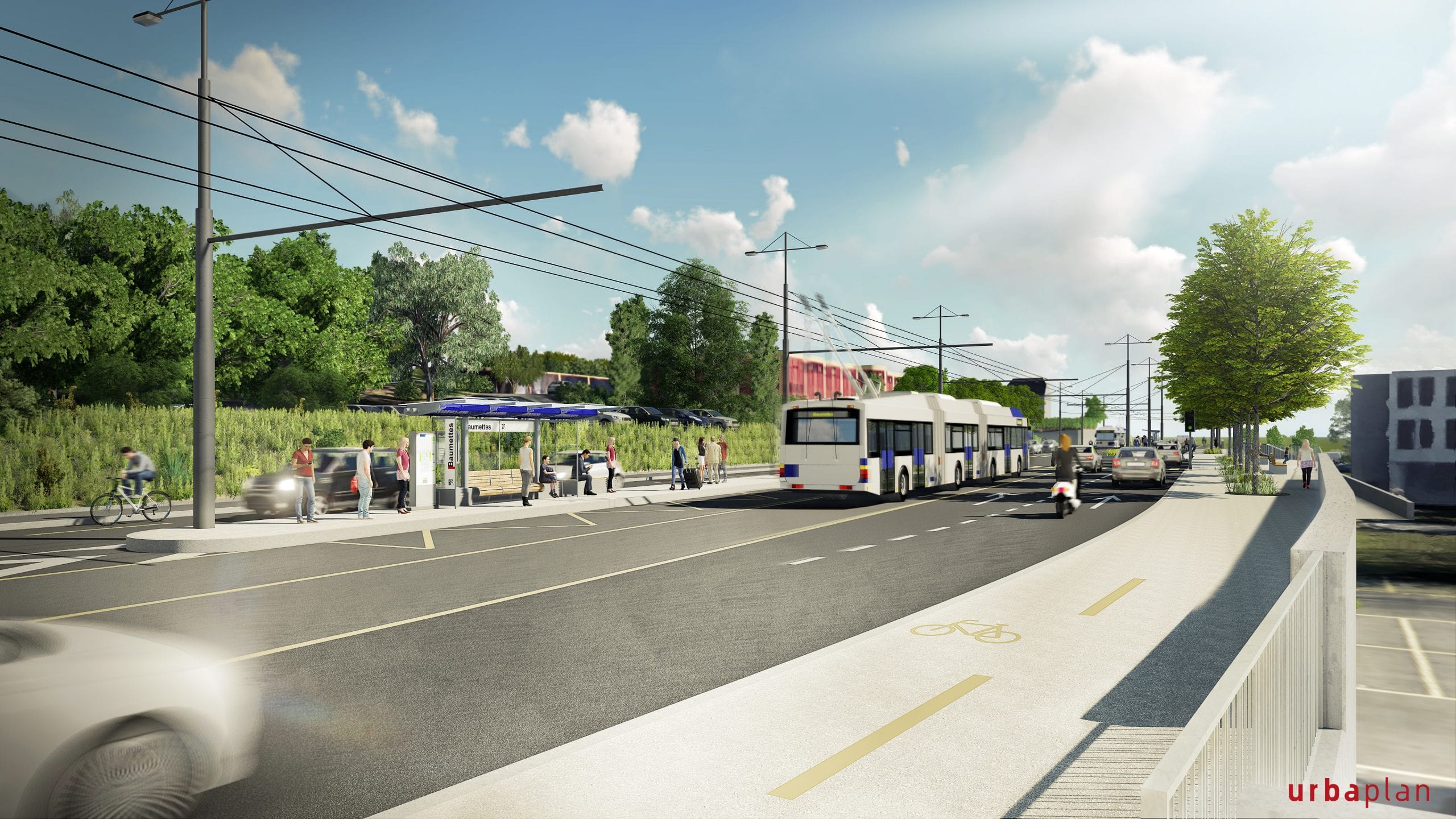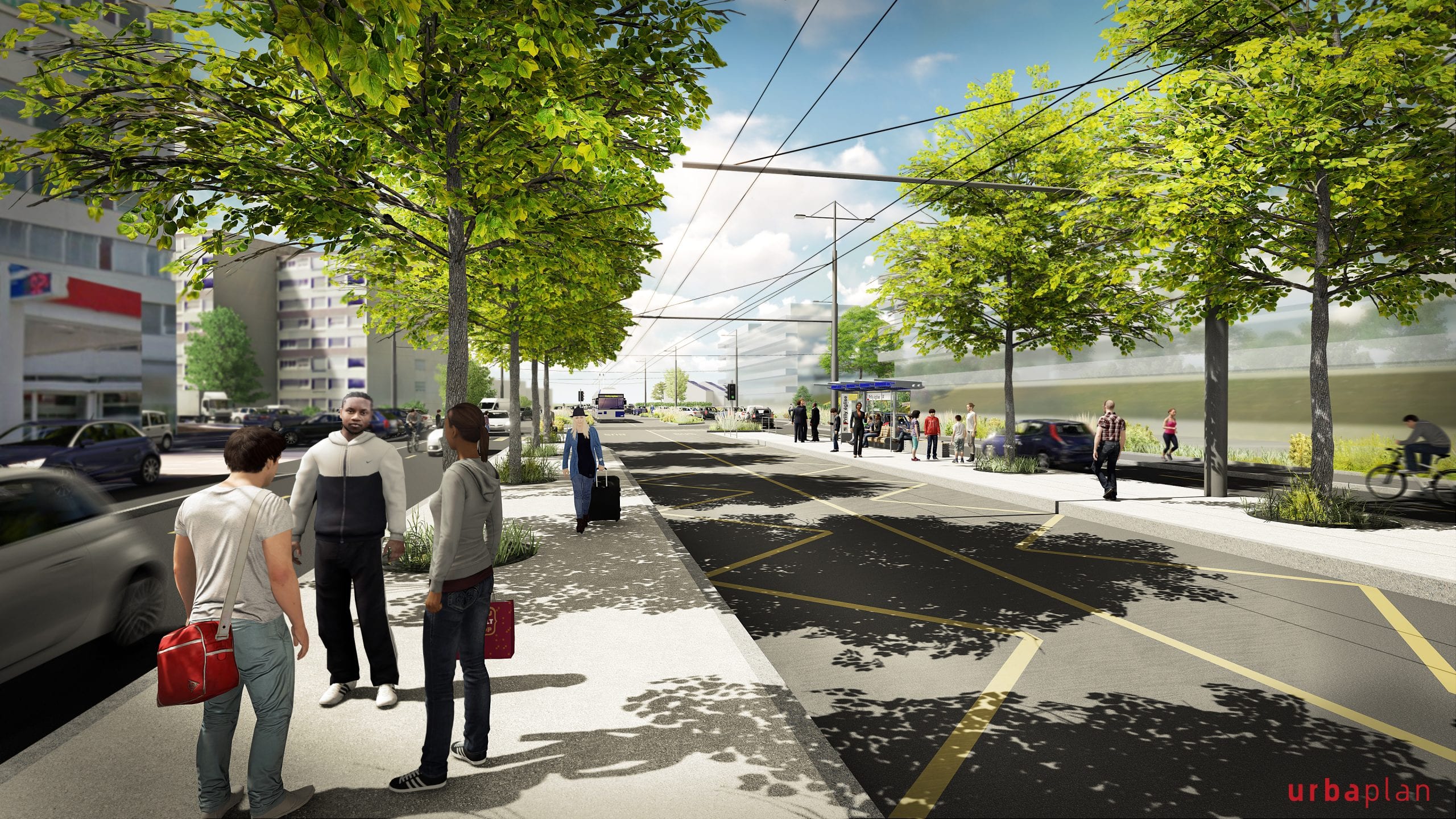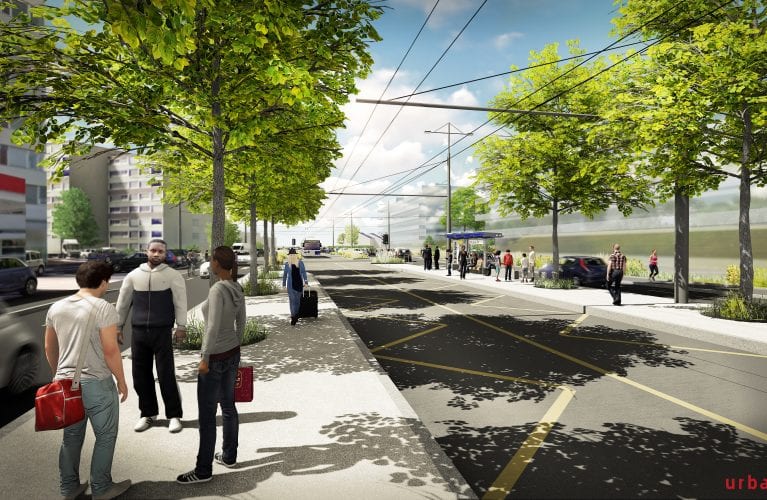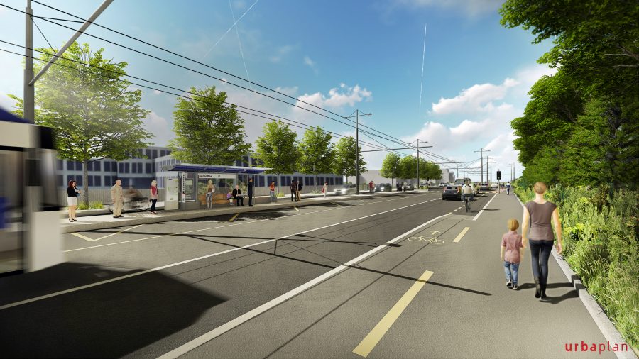 Conjugués à une desserte en transports publics performante, plusieurs quartiers pourront ainsi émerger le long de l’axe. L’amélioration de la qualité de vie des riverains est également au cœur du projet, grâce à des aménagements prévus tels que la plantation d’arbres, la création de bandes engazonnées, l’aménagement de trottoirs confortables et de pistes cyclables continues.